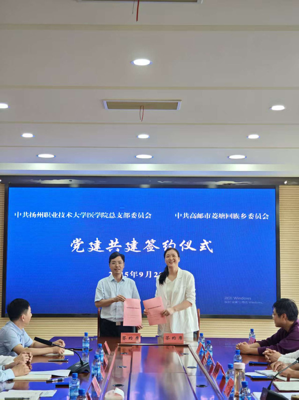 医学院党总支与菱塘乡党委举行了党建共建签约仪式。菱塘回族乡党委副书记、乡长杨泽海与医学院党总支书记卢子华分别致辞。双方一致认为,此次共建是推动基层党组织建设、服务地方发展的创新举措,希望以此次合作为起点,实现资源共享、优势互补,共同探索校地党建共建的新模式、新路径,努力将共建合作打造成为党建引领发展的示范工程、校地协同创新的精品工程、服务地方建设的民心工程。